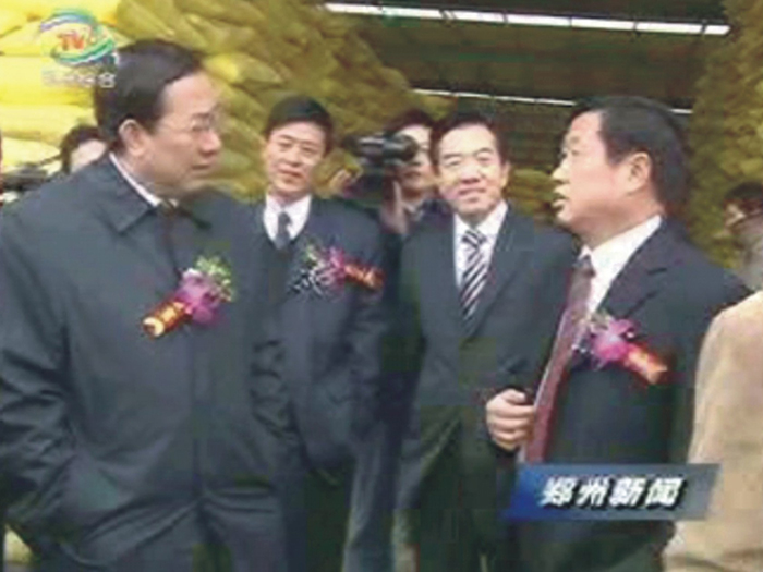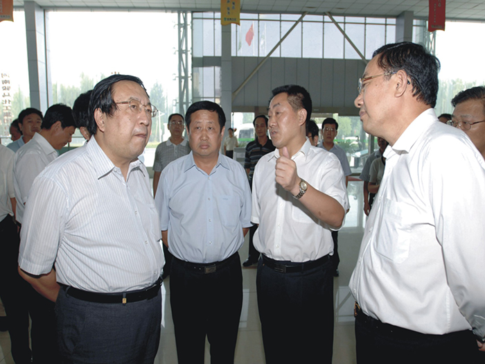 时任河南省省委书记郭庚茂(前排左二)、省长谢伏瞻(前排左一)莅临万庄集团指导工作